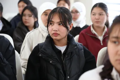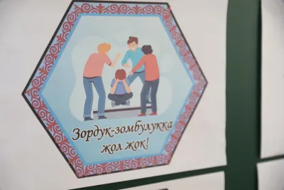 Жолугушууда окуучуларга жана студенттерге эрте турмуш курууну терс кесепеттери жана кылмыш жасагандарга берилүүчү жазалар туурасында маалыматтар берилүүдө.
