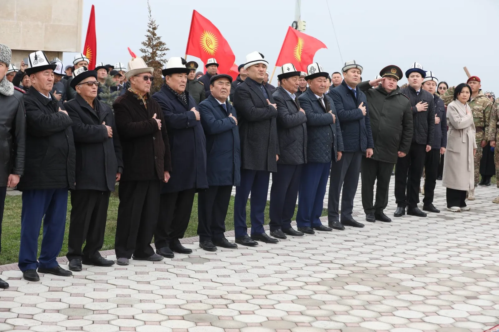 Майрамдык иш-чара "Манас" стеласындагы мамлекеттик тууну көтөрүү аземи менен башталды.